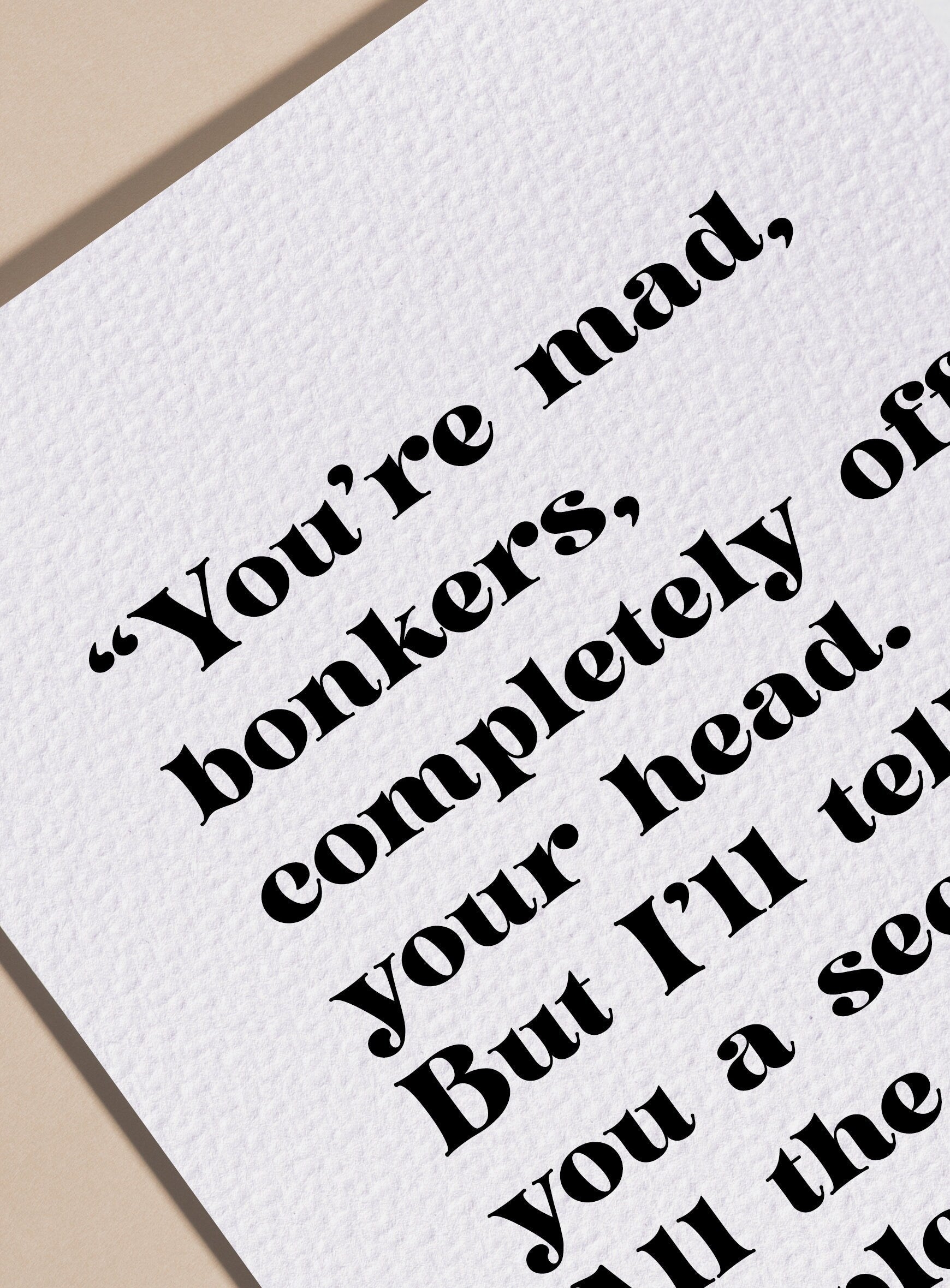 See More Love Quotes"You're mad, bonkers