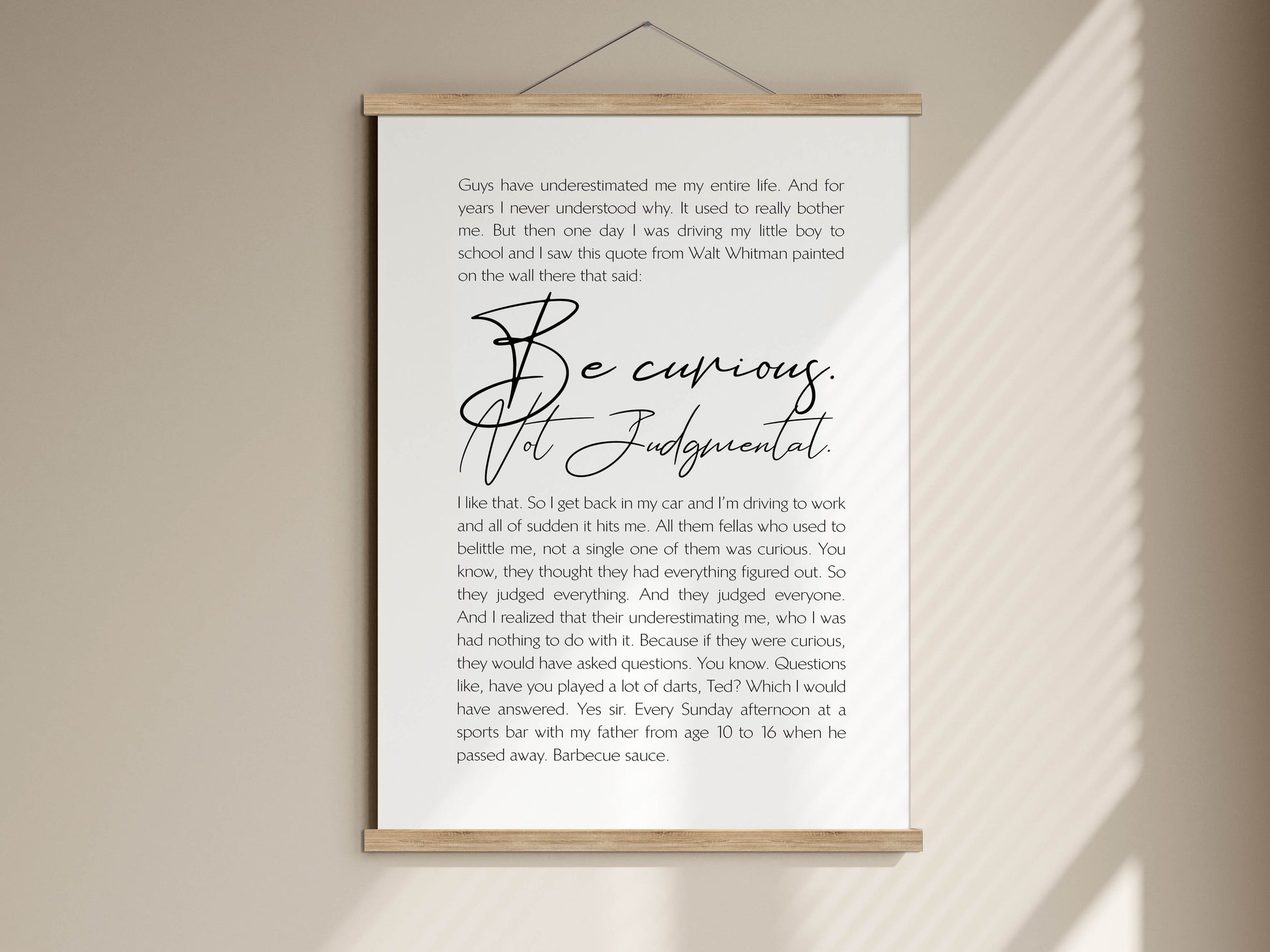Ted Lasso's Quote - Be curious. Not Judgmental