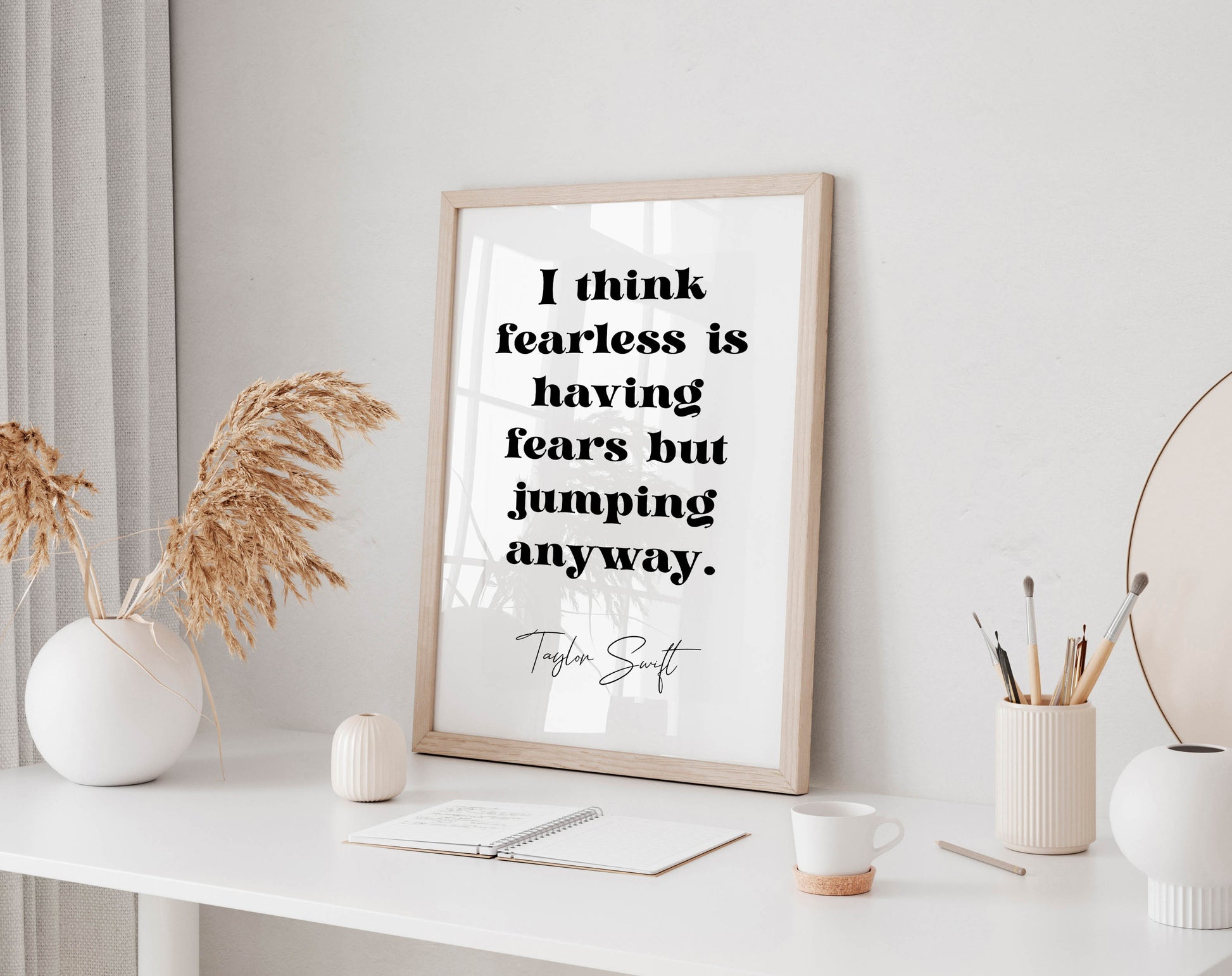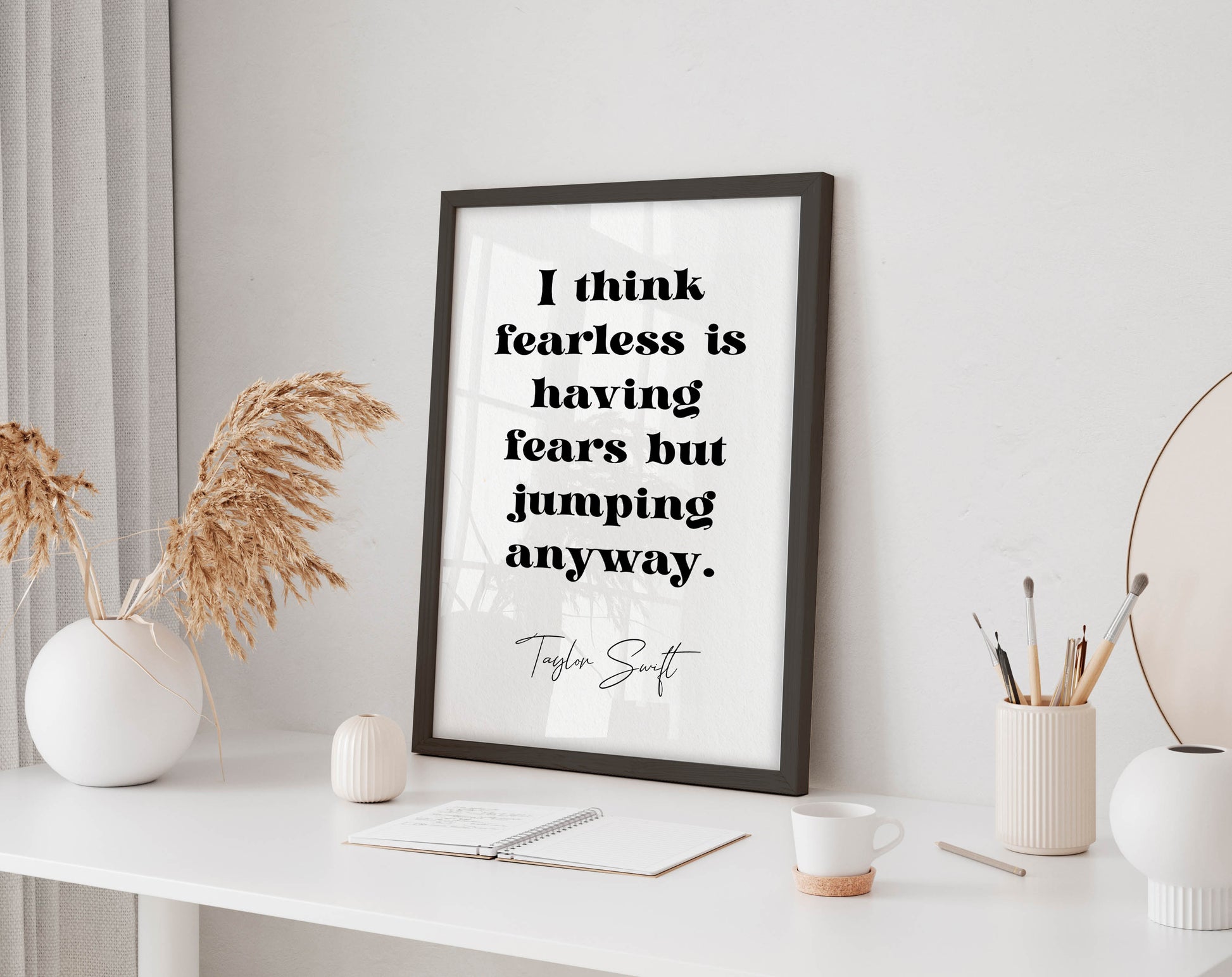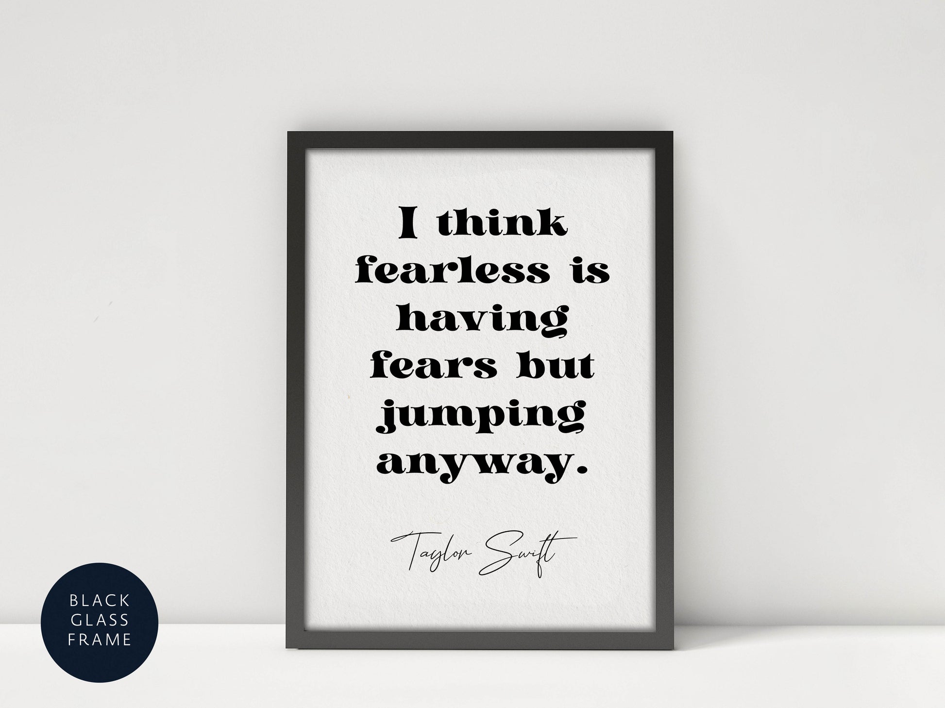 Taylor Swift quote - I think fearless is having fears but jumping anyway framed print