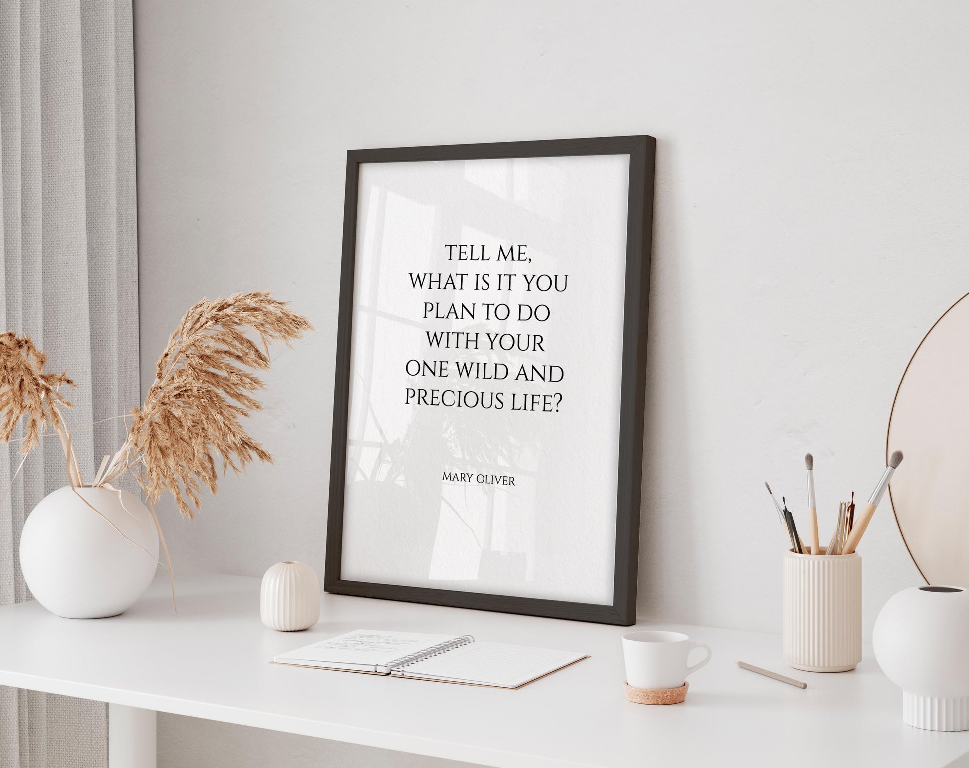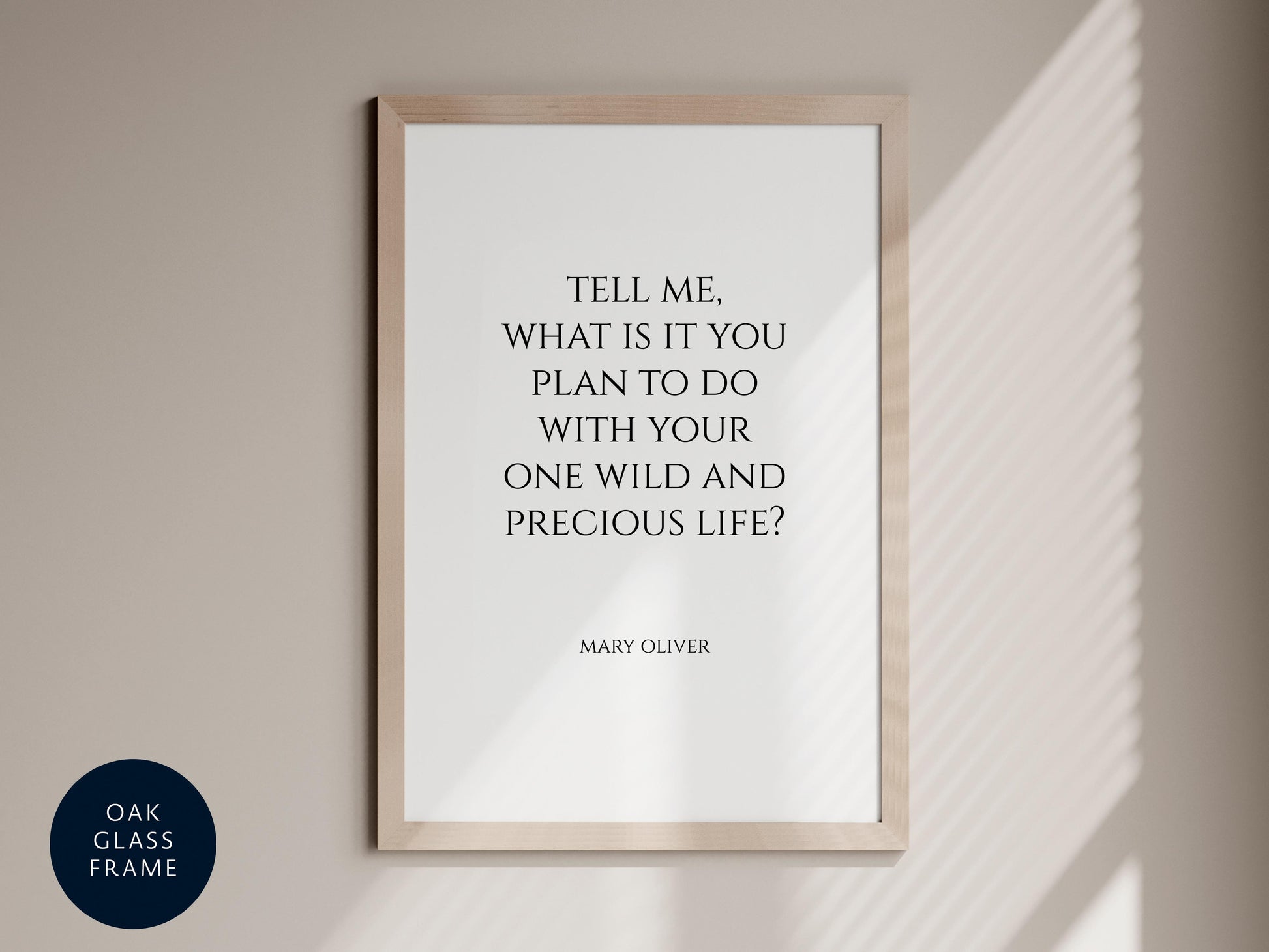 Mary Oliver Quote, Tell me, what is it you, plan to do, wild and, precious life, Poetry, Book Quotes, Poetry Print, Poem Quote, Framed poem